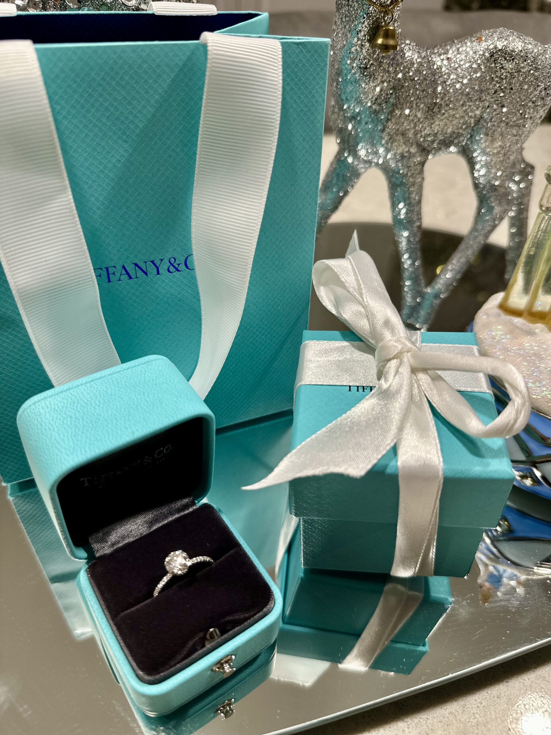 As for the ring oh my goodness. He presented me with the most stunning Tiffany & Co. “Tiffany Novo” engagement ring… the very first ring I tried on last year. He remembered! Even crazier, I had stopped at Tiffany’s just a few days before to get my finger sized again and ended up with the same sales consultant unbeknownst to me, she had sold him the ring the day before. What are the odds? I had to return to have it resized and she just smiled knowingly. Pure magic.