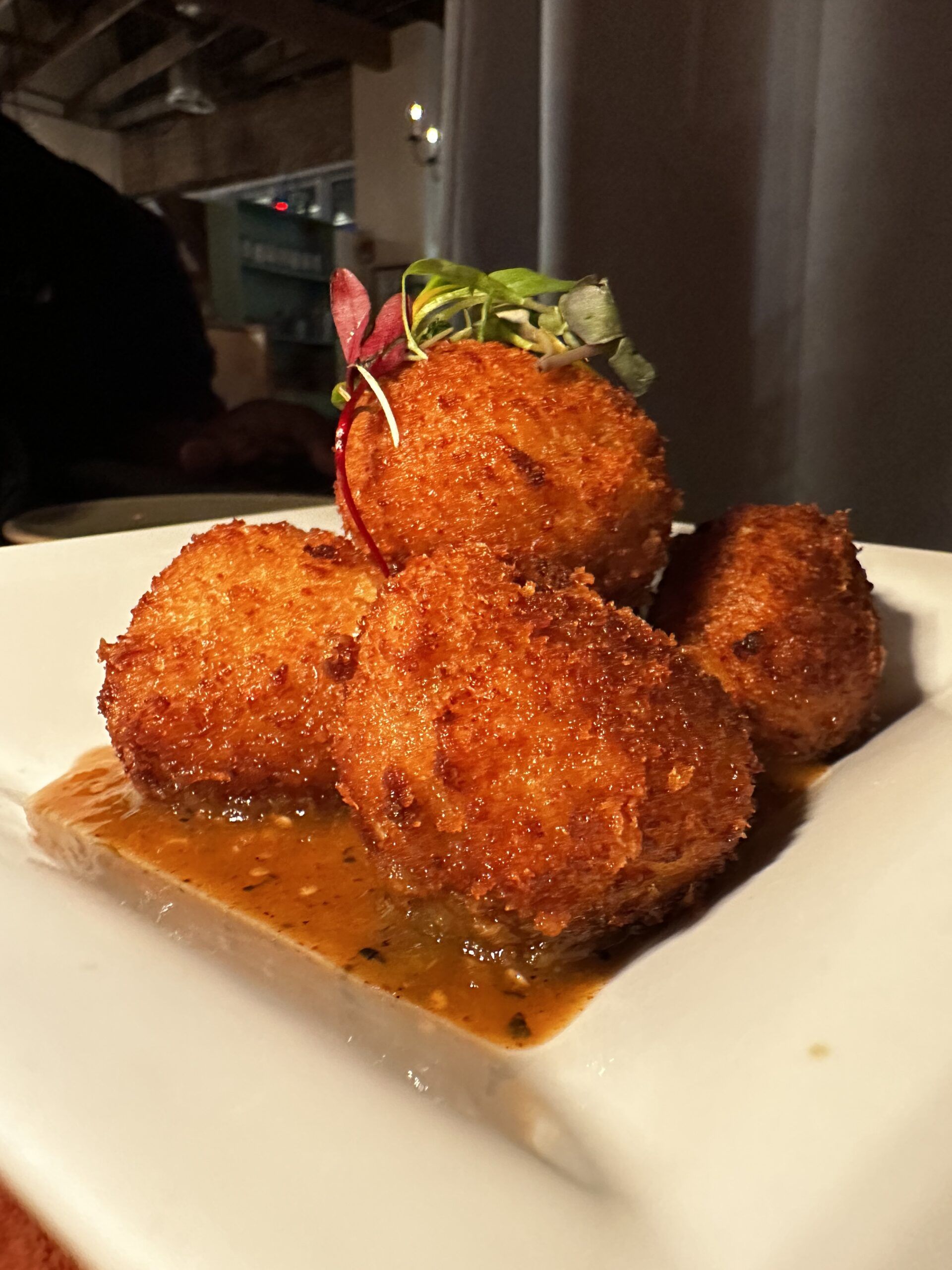 Pimento Fritters flash fried, tomatillo jam, so dang good!