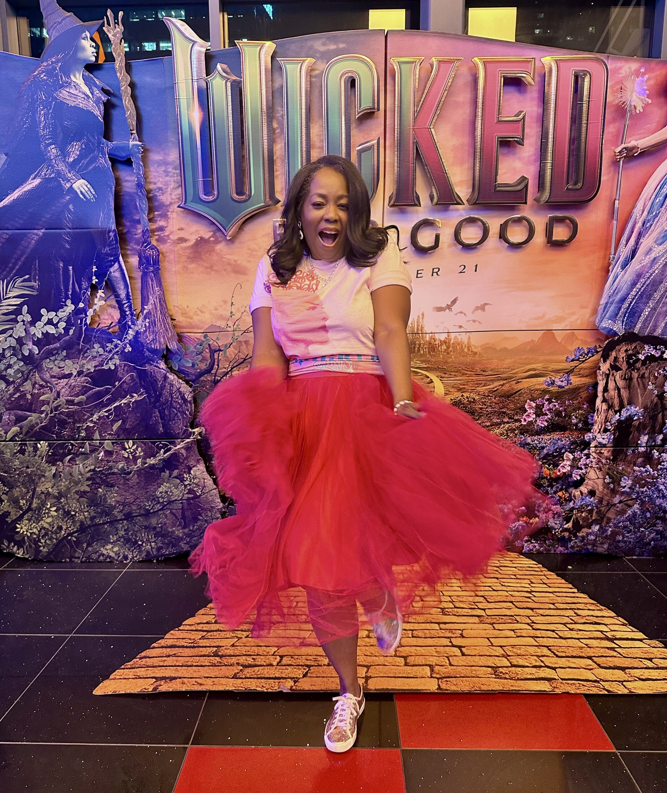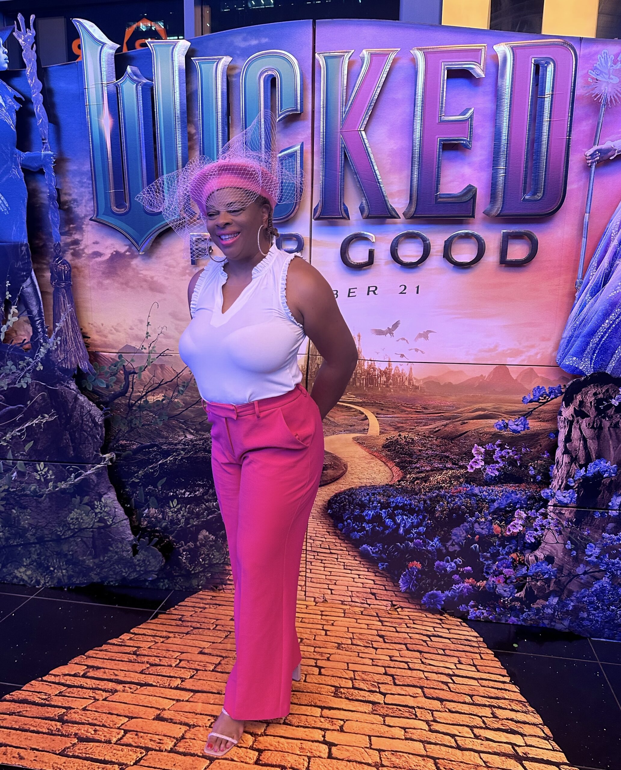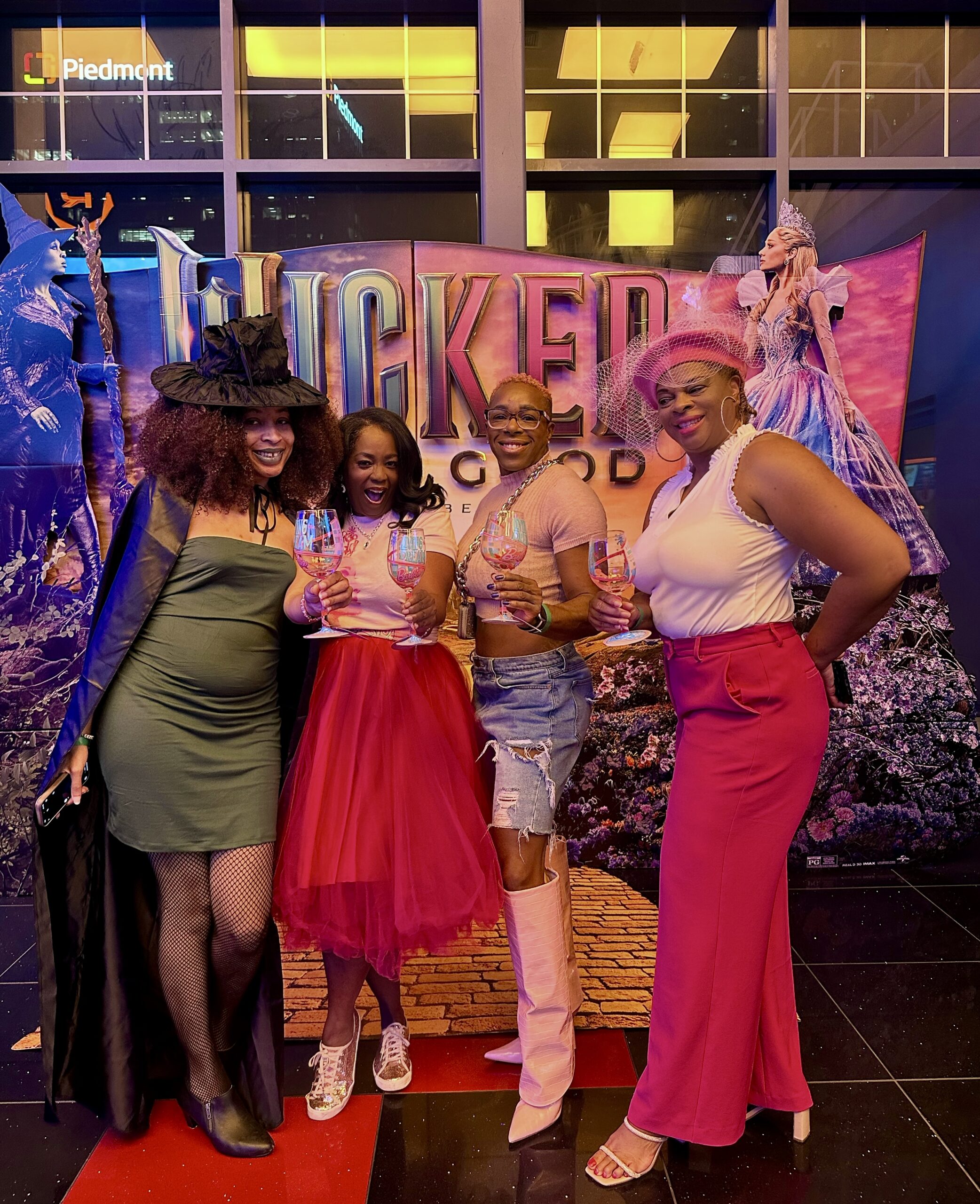 Over the years, nothing has brought me more joy than gathering women together to laugh, connect, and enjoy unforgettable moments of pure girl time! I’ve been hosting my annual Girls Night In for more than a decade now, and each year feels even more special than the last. I asked the ladies to dress up in their favorite characters colors. If they were team Good Witch they were to wear pink, if they were team Elphaba, they were to wear black. Last night, my girls and I headed to Regal Cinemas at Atlantic Station for an advance screening of Wicked: For Good the perfect film to celebrate friendship! And since it’s the holidays and my favorite color is pink, the whole night felt extra whimsical and magical.